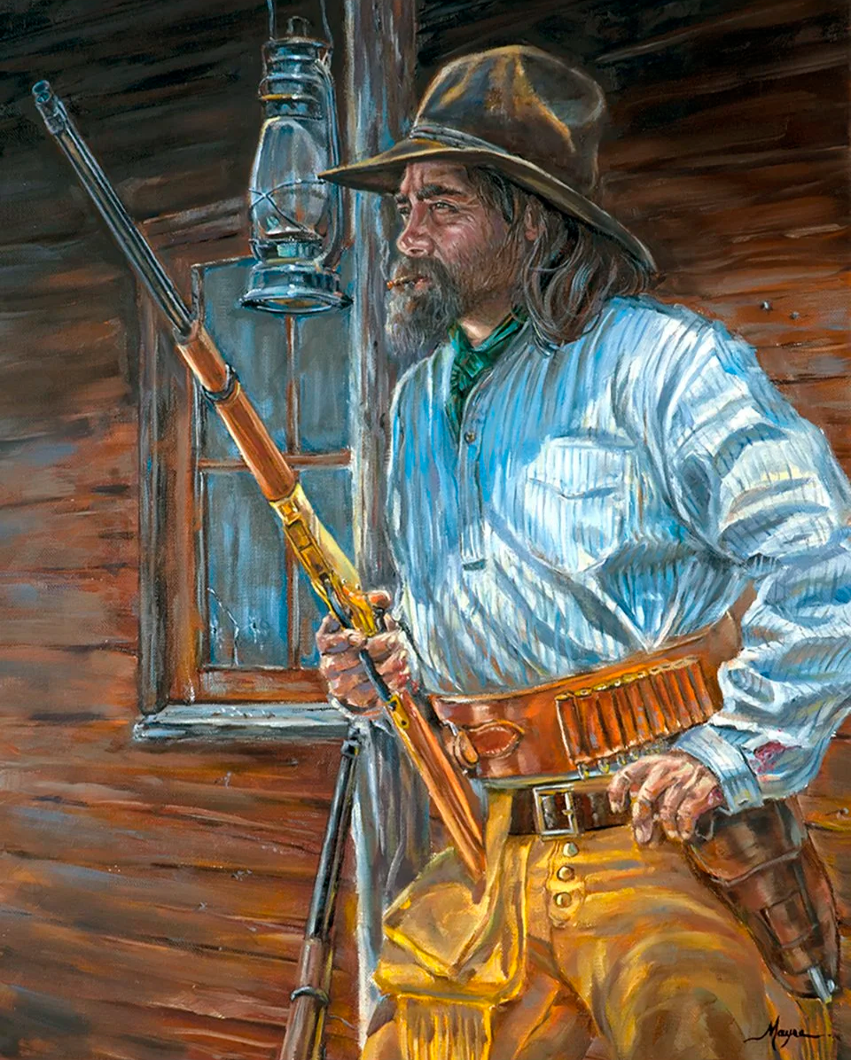 For the past several years, Gregory has spent time traveling to photograph cowboys, Native Americans, ranchers, period reenactors, and models dressed in 1800's clothing and gear replicating the Old West. He uses these as reference images to inspire his paintings.